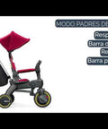24-30 meses MODO TRICICLO Respaldo; Barra de control de padres; Pedales