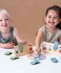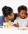 Está diseñado para ayudar a los niños pequeños a desarrollar habilidades sociales para “turnarse”, habilidades motoras finas y color.
