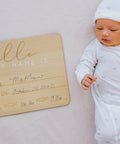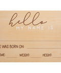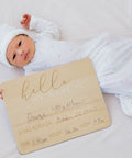 ¡Prepárese para la llegada del bebé con este adorable cartel de madera de bienvenida para bebés y tablero de fotos con el mensaje "Hola, mi nombre es"!
